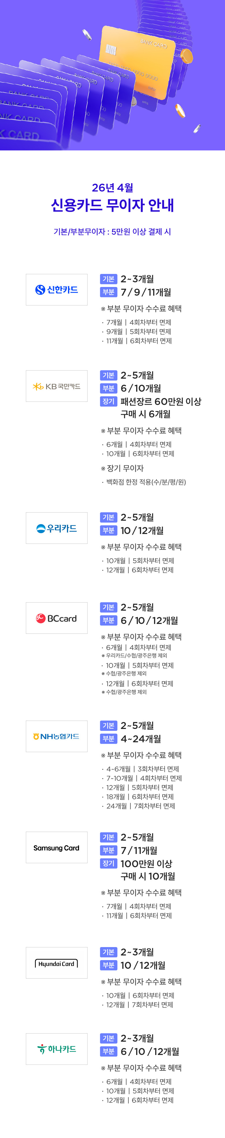 - 무이자 혜택은 단일 5만원 이상 결제 시 적용됩니다.