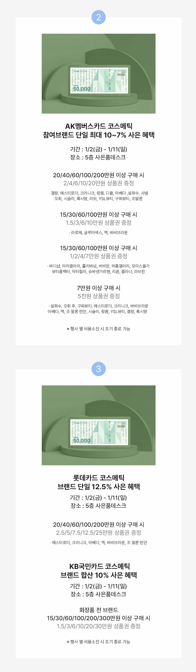 - 사은행사, 금액할인, 브랜드 프로모션 3가지 헤택은 중복 적용 가능합니다.