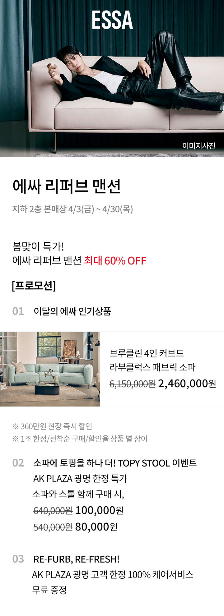 [에싸 리퍼브 멘션] 봄맞이특가! 최대 60% OFF