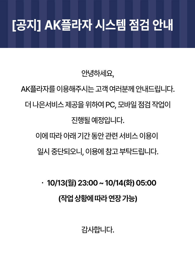 [공지] AK플라자 서비스 점검 안내